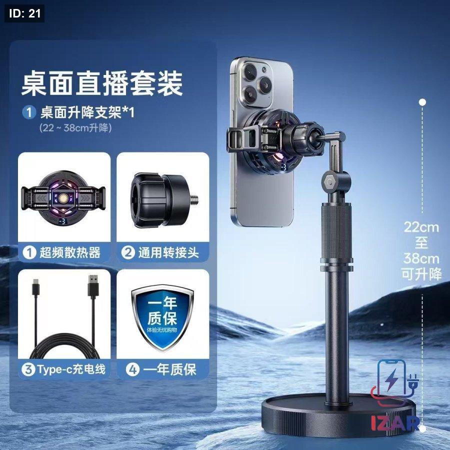 هولدر ثابت للمكاتب مع مروحة مناسب للبث المباشر حيث انه يسمح باستمرارية البث دون انقطاعه بسبب زيادة درجة حرارة الهاتف